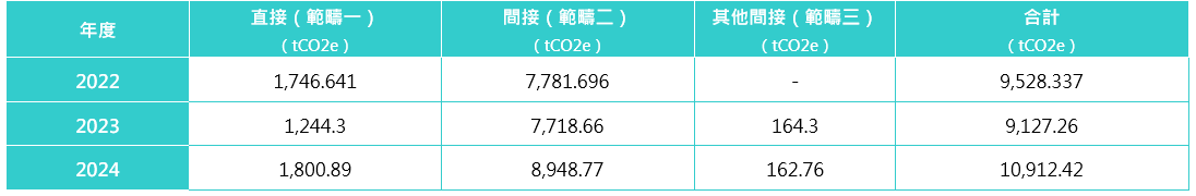 1. 數(shù)據(jù)為範(fàn)疇一、範(fàn)疇二、範(fàn)疇三合計(jì)。溫室氣體包含CO2、CH4、N2O、HFCS。
