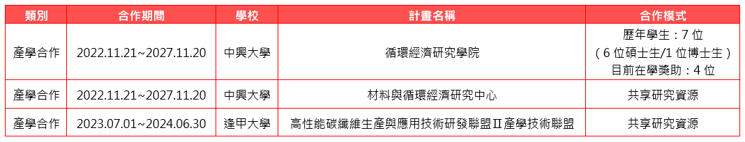 上緯集團致力於綠色環保材料的研發,視保護地球環境為己任,自 2022 年以來與中興大學循環經濟學院合作,在工業及智慧科技學程-材料及循環經濟領域,共同培育循環經濟人才;預計 5 年內投入 4,000 萬元經費作為每月獎學金及設立材料與循環經濟研究中心之用。同時與逢甲大學簽訂科技部補助產學技術聯盟合作計畫;預計計劃期間每年內投入 5 萬共享研究資源,期待延攬有共同理念的學術人才加入上緯,讓上緯的研發能量持續精進與創新,亦藉由學術資源與產業技術的整合帶動中臺灣的經濟與社會發展。 2024 年 9 月更是邀請中興大學循環經濟學院 70 名師生,至上緯創新園探索職場與交流材料研發的無限可能性,並在參訪後進行新生與國際人才的培育獎助學金面試交流,過程中師生們與上緯研發團隊教學相長激發出更多創新思維。