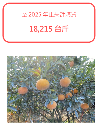 上緯以愛護環境的心支持有機栽種,自2012年起每年持續向南投在地果農購買有機茂谷柑,至2025年止共計購買18,215臺斤,吃在地、吃當季,減少食物碳足跡,用最天然的方式一起愛地球。