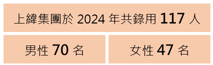 上緯提倡多元友善的招募,吸引優秀人才加入,致力確保公司內外的每一個人,均能獲得平等、尊嚴的對待,打造多元友善的職場環境,並遵循國際人權公約及勞動法令之規定,以公平、公正之招募甄選制度,尋找優秀人才,建構安全健康職場,及多元化暢通溝通管道,秉持「用人唯才、適才適所」之原則,依照應徵人員之專業知識、技能及工作經歷為錄取依據,絕不以種族、階級、語言、思想、宗教、黨派、籍貫、出生地、性別、性向、年齡、婚姻、外觀、身心障礙身分為由,而予以不同考量,克盡企業社會責任,強化企業認同感,確保新進人力及既有員工之穩定性。
