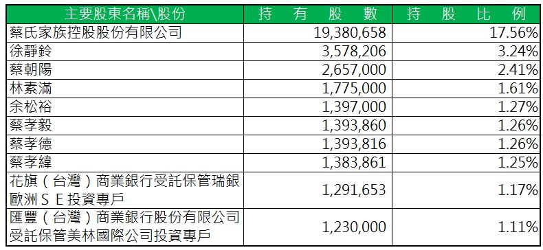 截至114/03/28,股權比例達百分之五以上之股東或股權比例占前十名之股東名稱。