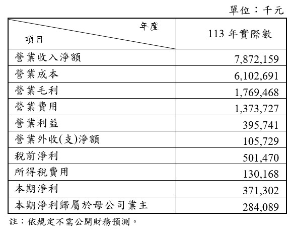 113年度合併營業額為新臺幣78.72億元,較去年增加7.91%,其中環保綠能材料營收增加15.39%。(二)實際執行情形︰